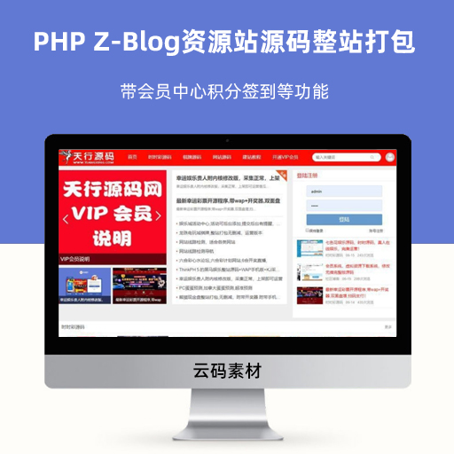 PHP Z-Blog资源站源码整站打包 带会员中心积分签到等功能