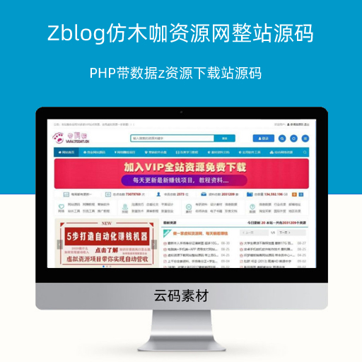 Zblog仿木咖资源网整站源码 PHP带数据z资源下载站源码