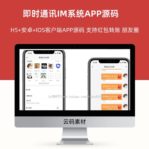 即时通讯IM系统H5+安卓+IOS客户端APP源码 支持红包转账 朋友圈