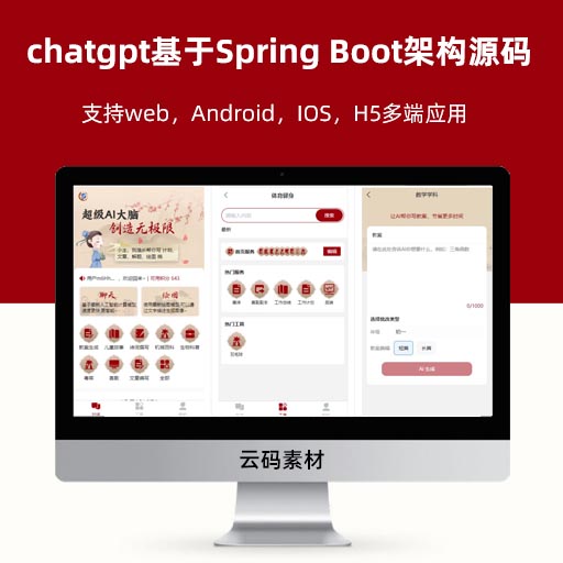 chatgpt基于Spring Boot架构源码 支持web,Android,IOS,H5多端应用