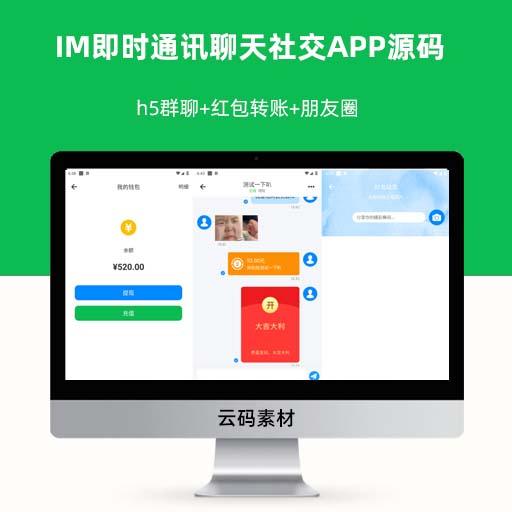 IM即时通讯聊天社交APP源码+h5群聊+红包转账+朋友圈