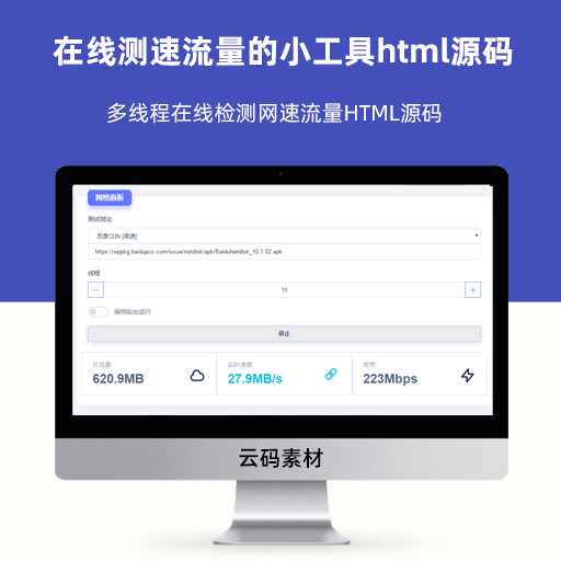 在线测速流量的小工具html源码 多线程在线检测网速流量HTML源码