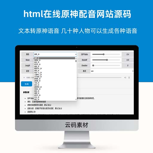 html在线原神配音网站源码 文本转原神语音 几十种人物可以生成各种语音