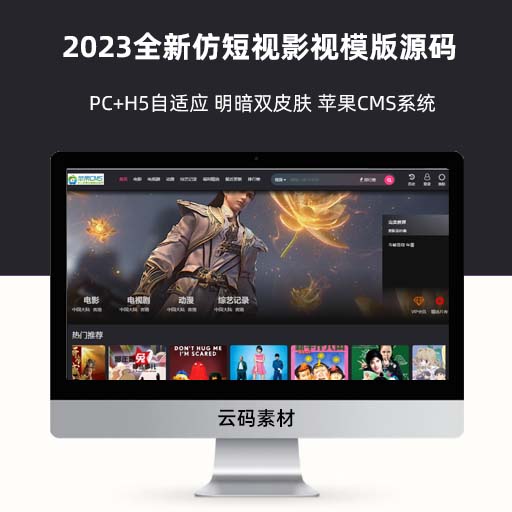 2023全新仿短视影视模版源码 PC+H5自适应 明暗双皮肤 苹果CMS系统