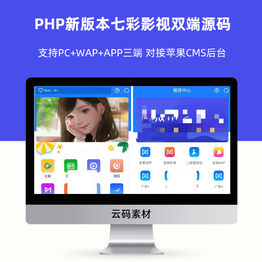 PHP新版本七彩影视双端源码 支持PC+WAP+APP三端 对接苹果CMS后台