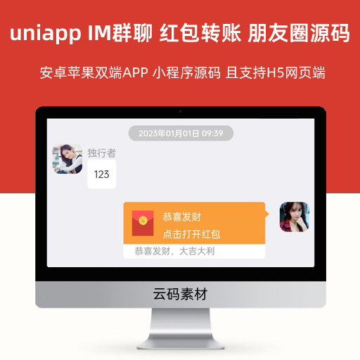 uniapp IM群聊 红包转账 朋友圈 安卓苹果双端APP 小程序源码 且支持H5网页端