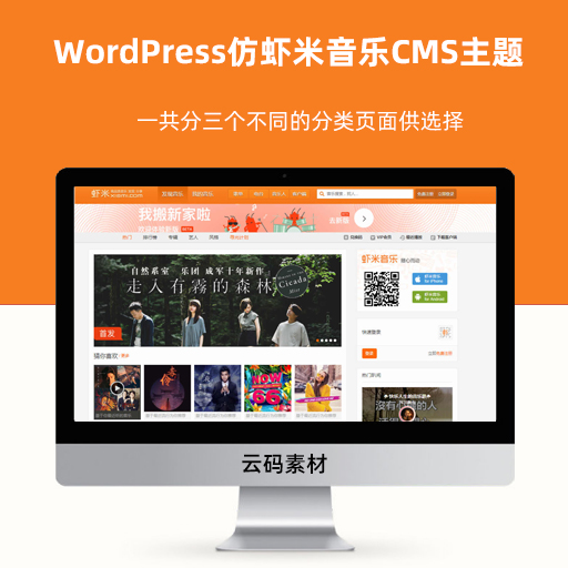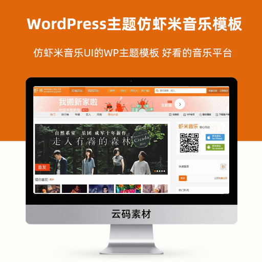 WordPress主题模板仿虾米音乐CMS主题源码模板