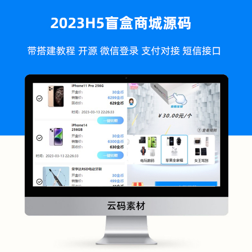 2023H5盲盒商城源码 带搭建教程 开源 微信登录 支付对接 短信接口