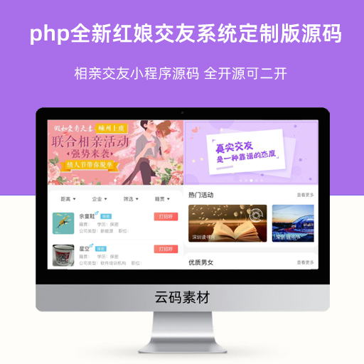 php全新红娘交友系统定制版源码 相亲交友小程序源码 全开源可二开