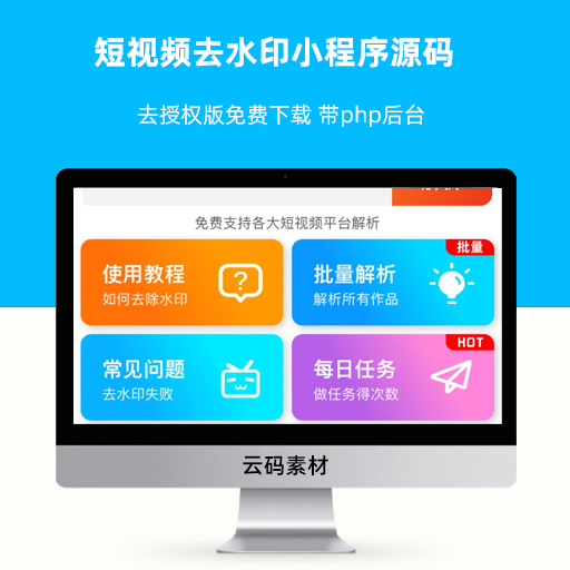 短视频去水印小程序源码 去授权版免费下载 带php后台