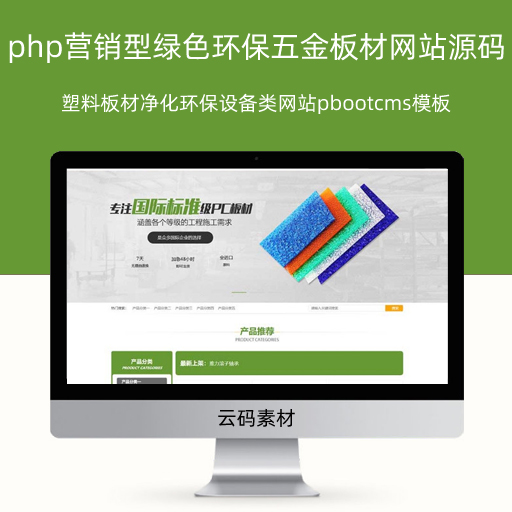 php营销型绿色环保五金板材网站源码 塑料板材净化环保设备类网站pbootcms模板...