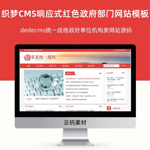 织梦CMS响应式红色政府部门机构网站模板 dedecms统一战线政府单位机构类网站源码...