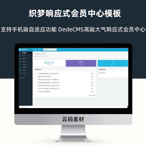 织梦响应式会员中心模板 支持手机端自适应功能 DedeCMS高端大气响应式会员中心模板...