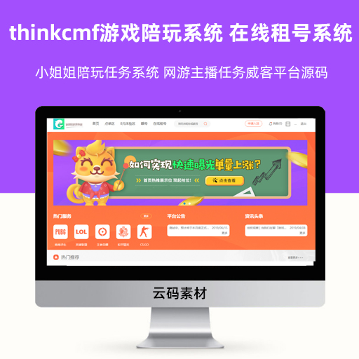 thinkcmf游戏陪玩系统 在线租号系统 小姐姐陪玩任务系统 网游主播任务威客平台源码...
