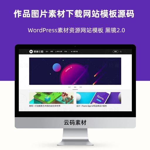WordPress作品图片素材下载网站模板源码 黑镜2.0...