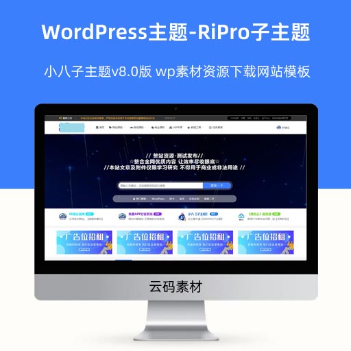 WordPress主题-RiPro子主题 小八子主题v8.0版 wp素材资源下载网站模板...