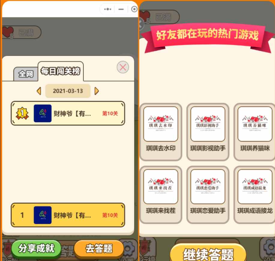 微信小程序秀才成语接龙趣味答题小游戏带流量主无授权源码