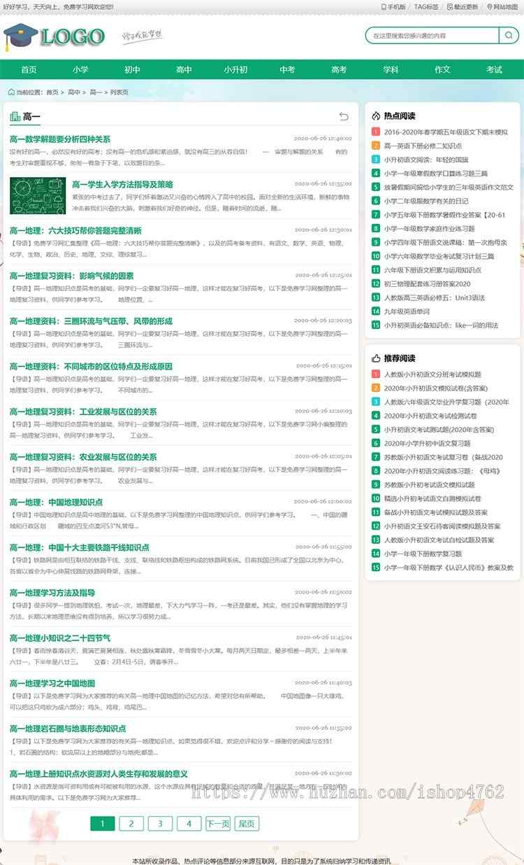 帝国CMS中小学生学习模板学生知识点总结试题练习题考试资讯源码
