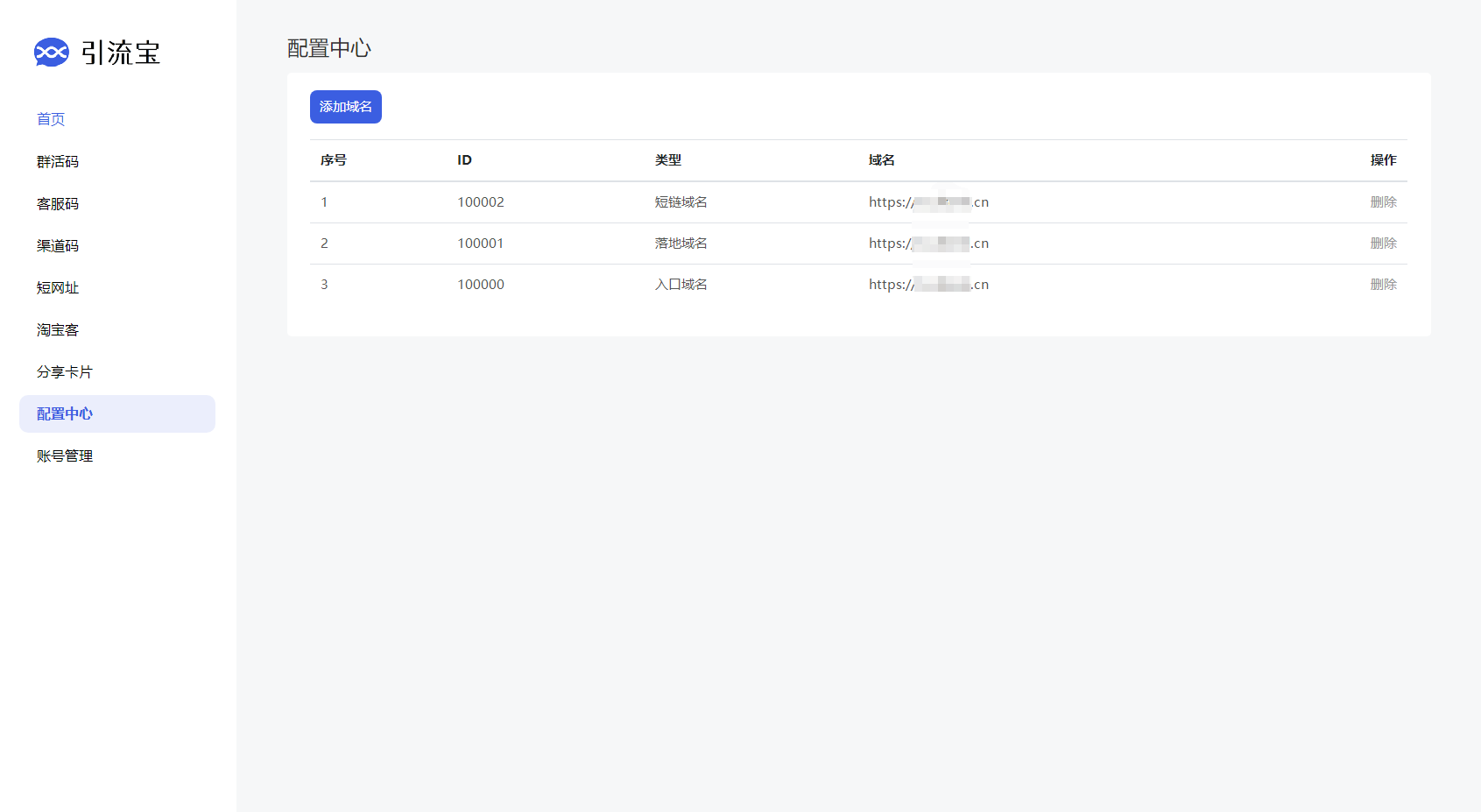 3. 可设置入口域名、中转域名、短链域名