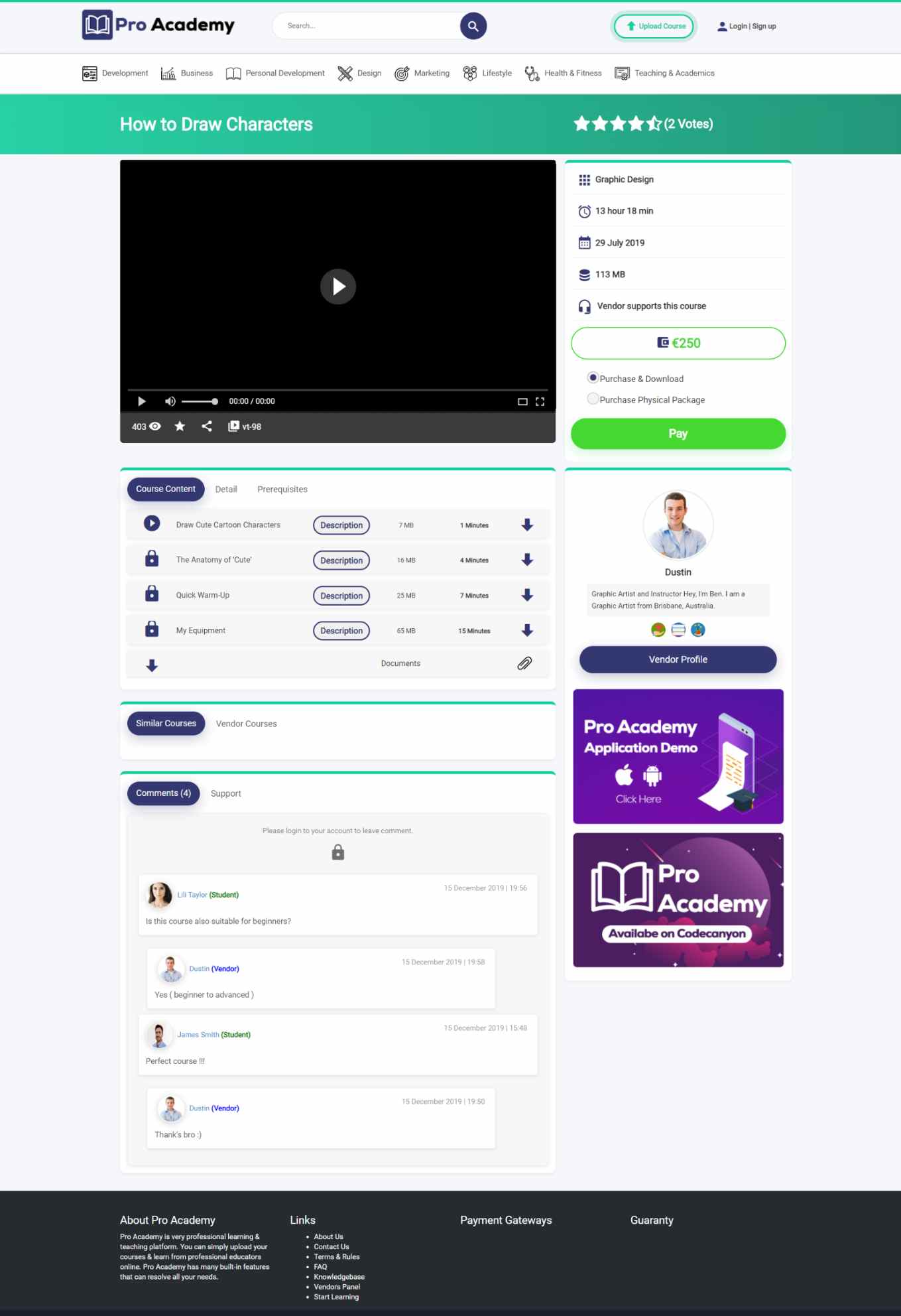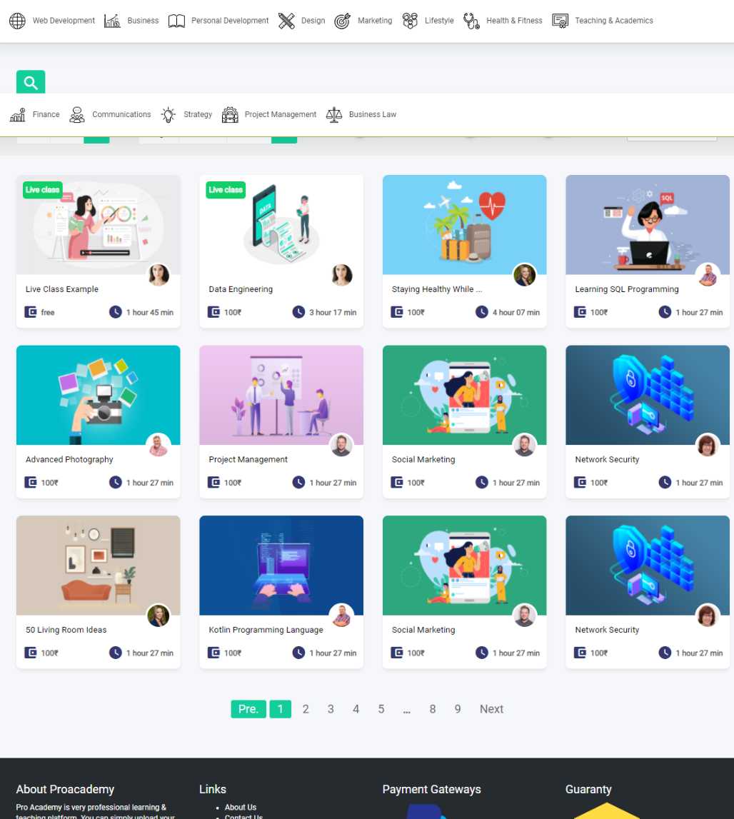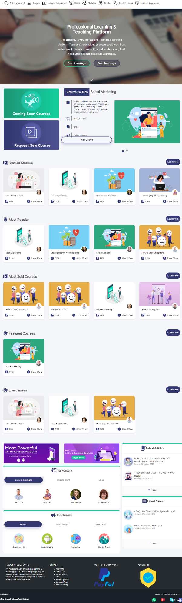 Proacademy是在线教育一体化的解决方案,用于创建类似于Udemy、Skillshare、Coursera这种在线教育市场。