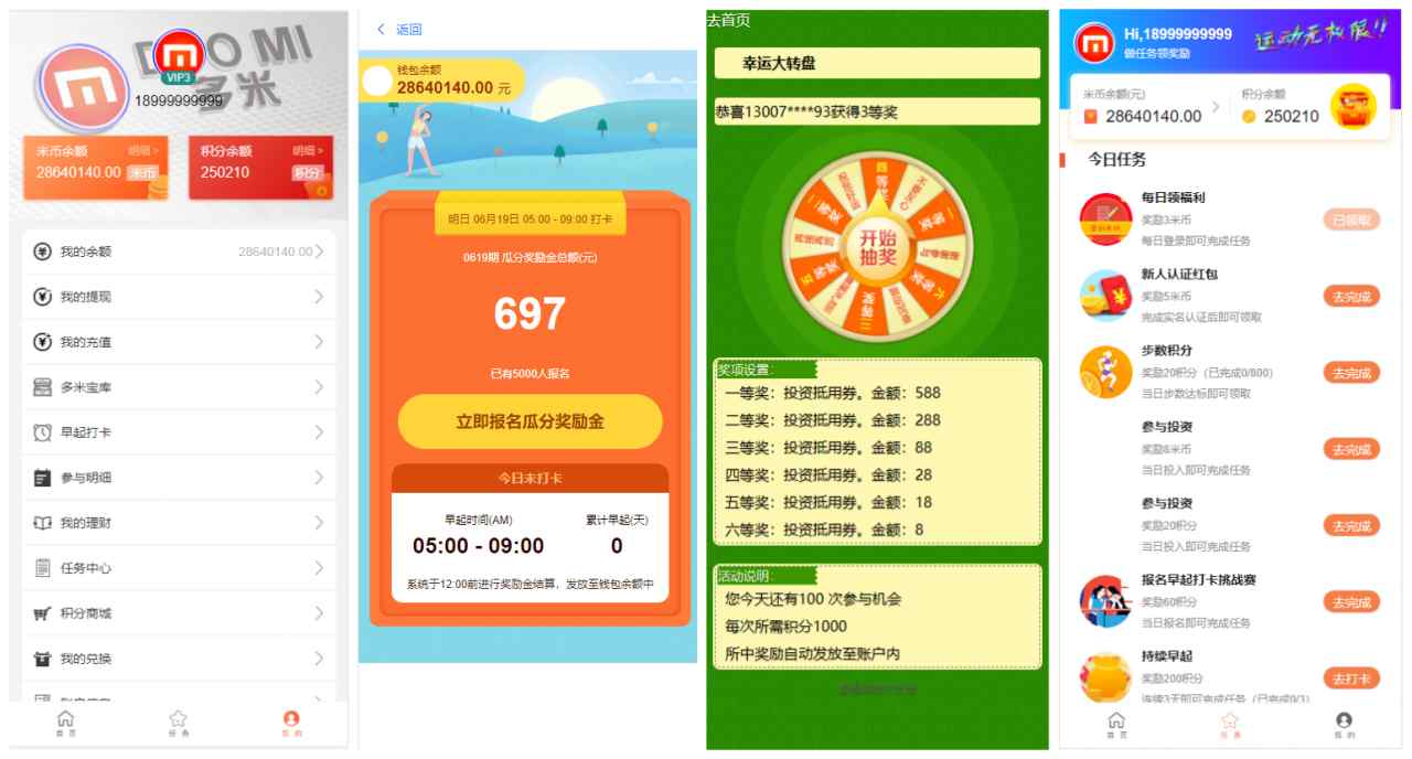 这款投资理财的源码模式非常全面,定投短投、余额宝收益、运动奖励等等,仿趣步的运动步数奖励,积分兑换,幸运转盘,新人红包,早起打卡,每日福利…运营模式非常多样化,积分商城、广告接口也都自带,广告接口已经对接广告联盟,支付对接个人免签可以修改,微信支付宝双通道。推广模式和运营变现都已经是非常成熟的一套完整流程。教程和源码都已经整理完毕,百分百完美搭建。