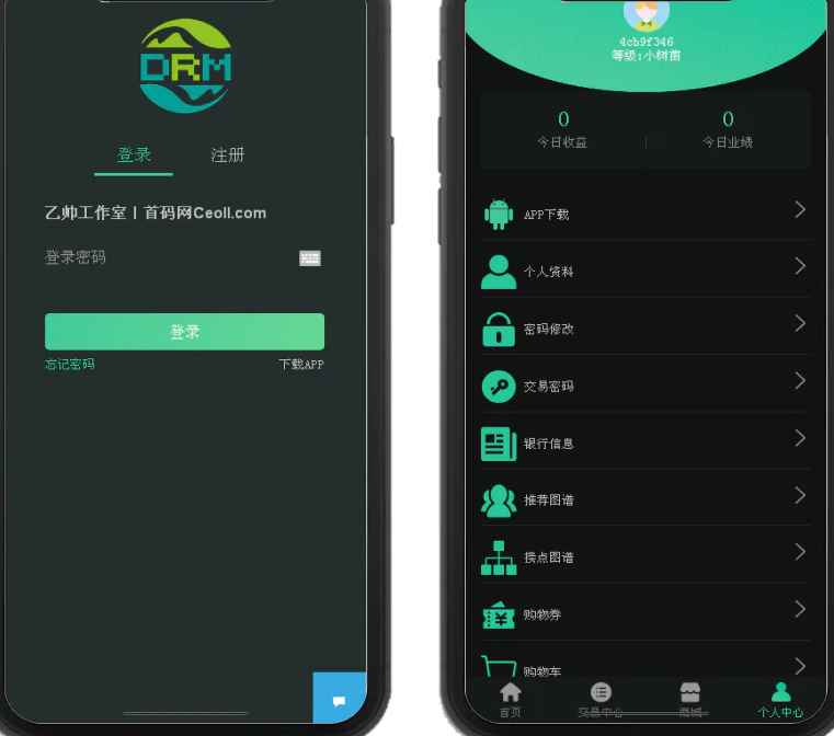 【DRM森林区块商城】种树区块系统带交易中心+直推系统+分红+在线挖矿+金融投资理财H5源码