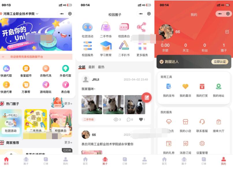 多校版本,多模块,适合跑腿,外卖,表白,二手,快递等校园服务