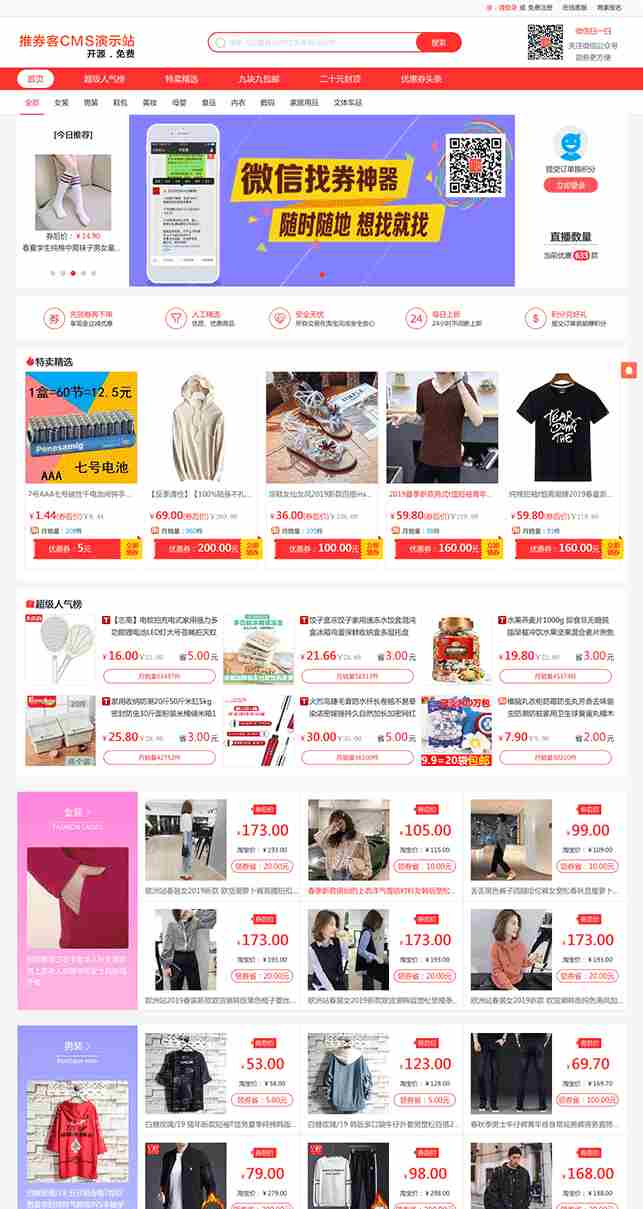 推券客CMS淘宝优惠券网站源码是一个以PHP+MySQL进行开发的PHP淘宝客优惠券网站。支持电脑站、手机站以及微信公众号查券。支持多级代理返利和阿里妈妈最新的