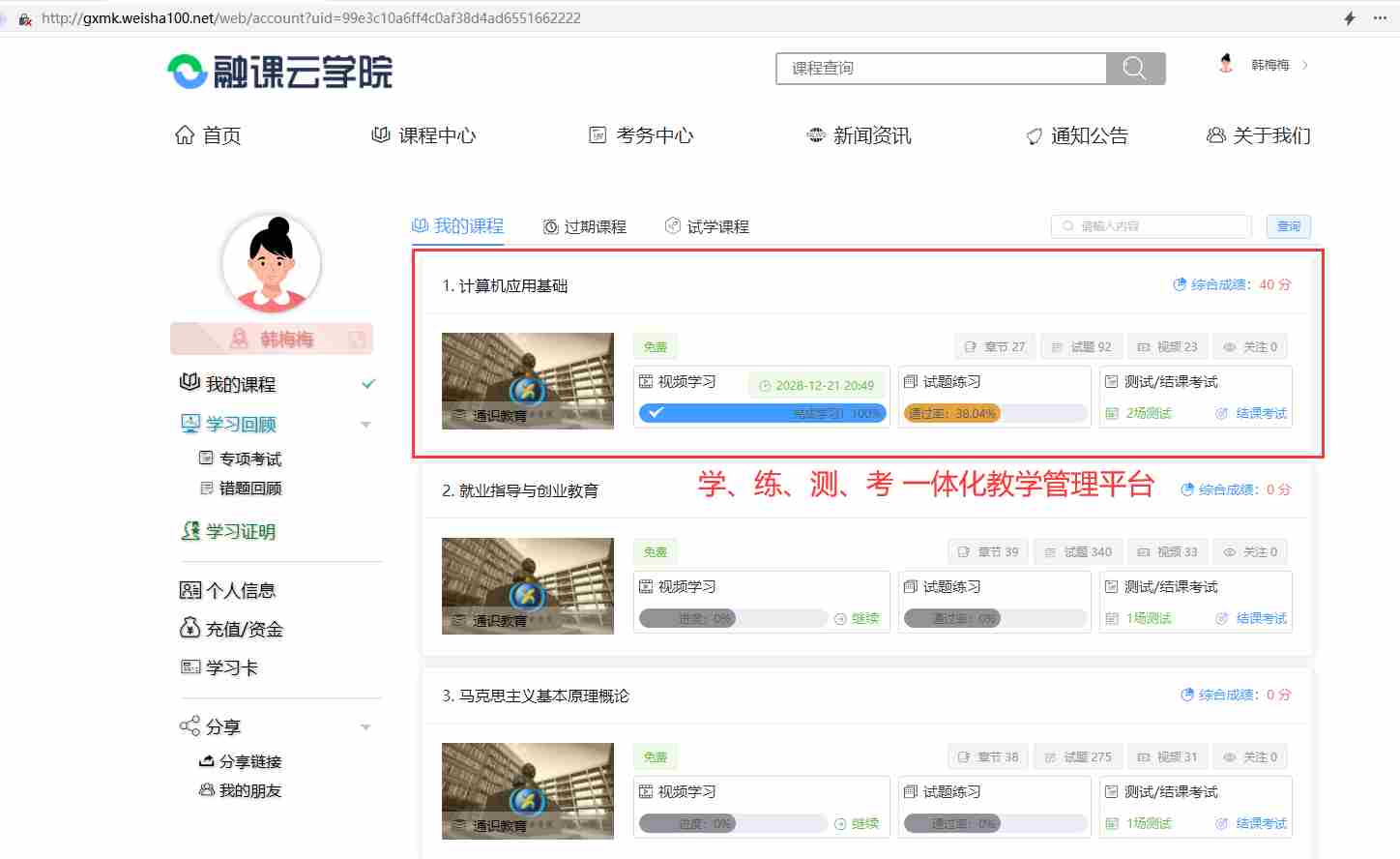 (1)课程中心:学员随时随地在线观看学习,后台直观掌握学习进度