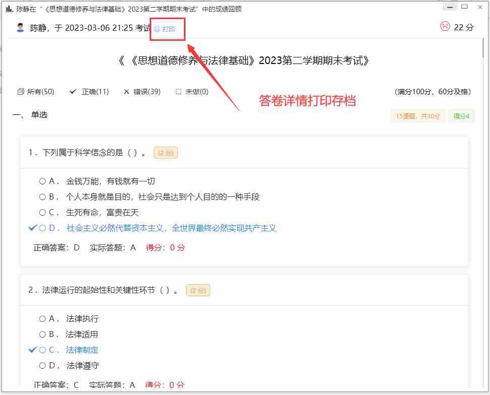 (3)模拟考试:学员在线模拟考试练习,自我检测、自我提升,教师组织统考,后台了解学员学习的掌握情况