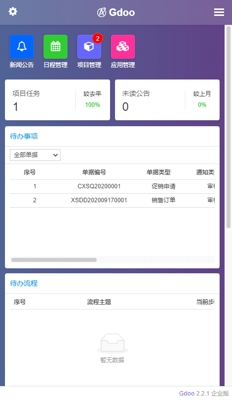 仪表盘支持简单的自定义、如快捷菜单、信息提示块、部件等