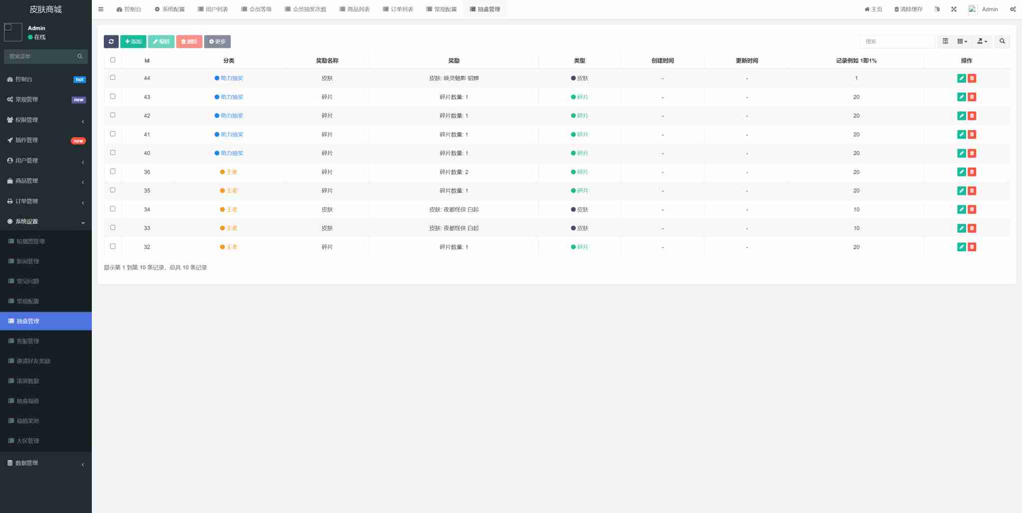 此源码为全新二开的,前端主打游戏皮肤抽奖模式