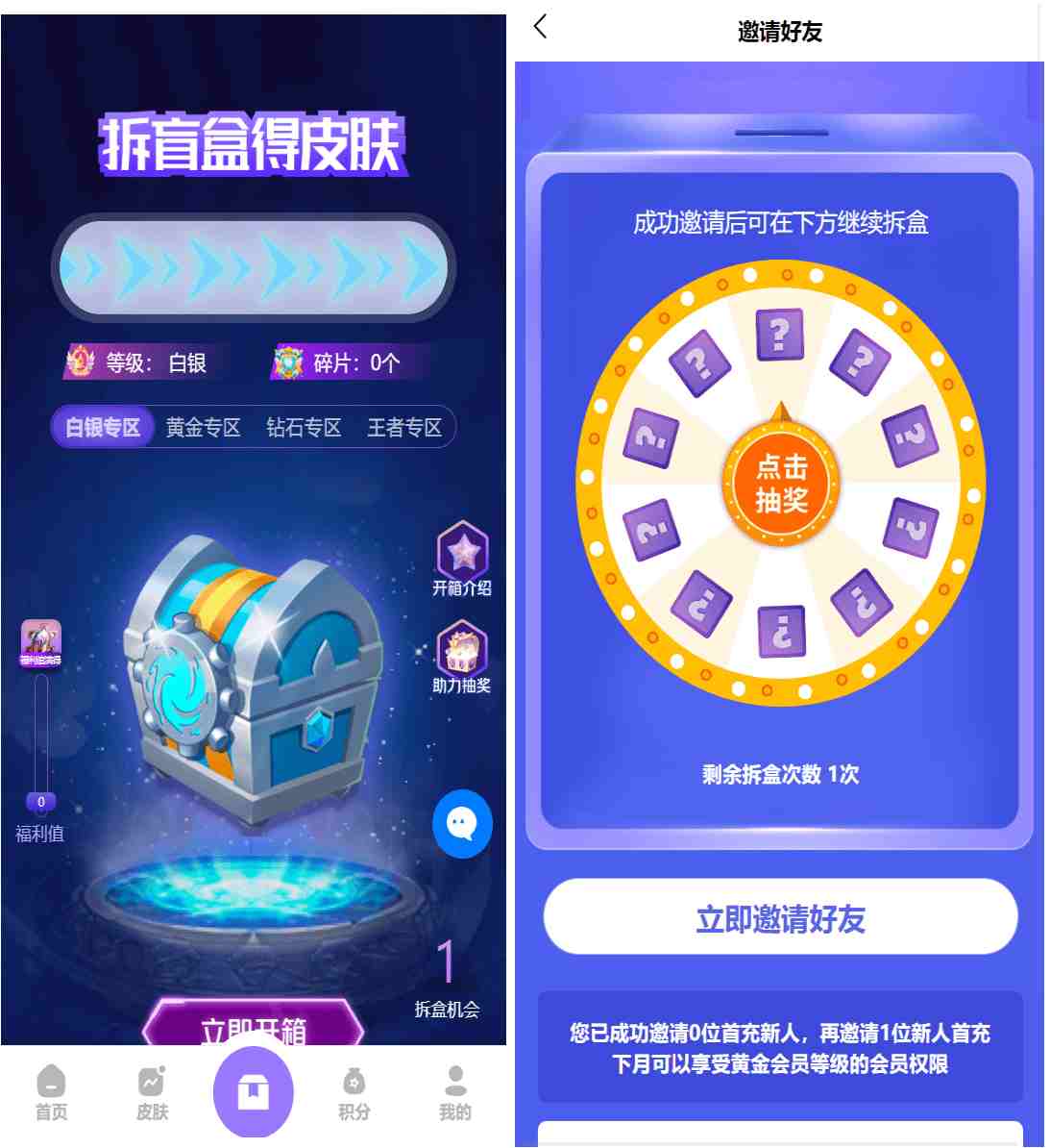 二开运营版王者荣耀皮肤抽奖系统 游戏皮肤盲盒 盲盒商城抽奖盲盒 前端UNIAPP 后台thinkphp