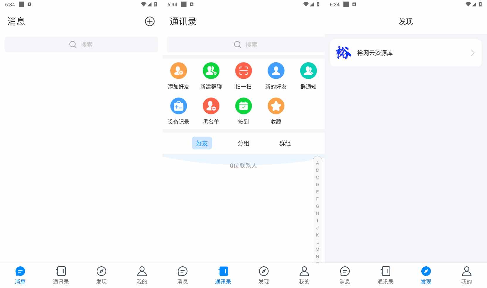 支持文字、表情、图片、语音、单聊、群聊、已读未读、消息群发、内嵌外链、签到、等完备的IM功能。