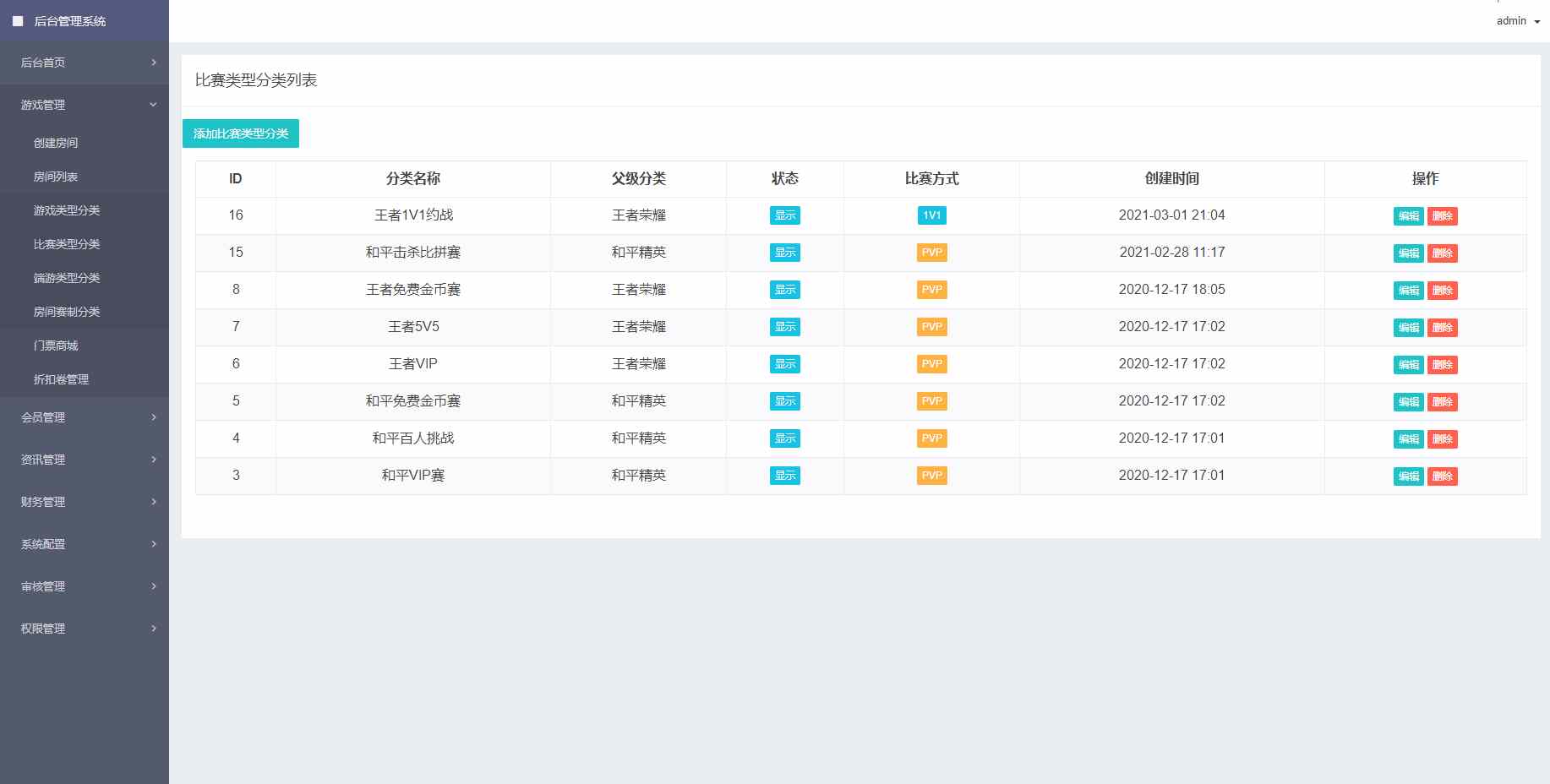 支持1v1、单排、双排组、战队排等多种比赛模式