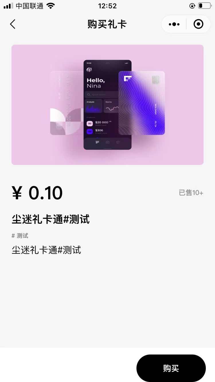 演示小程序:在小程序里面搜素:尘谜礼品卡