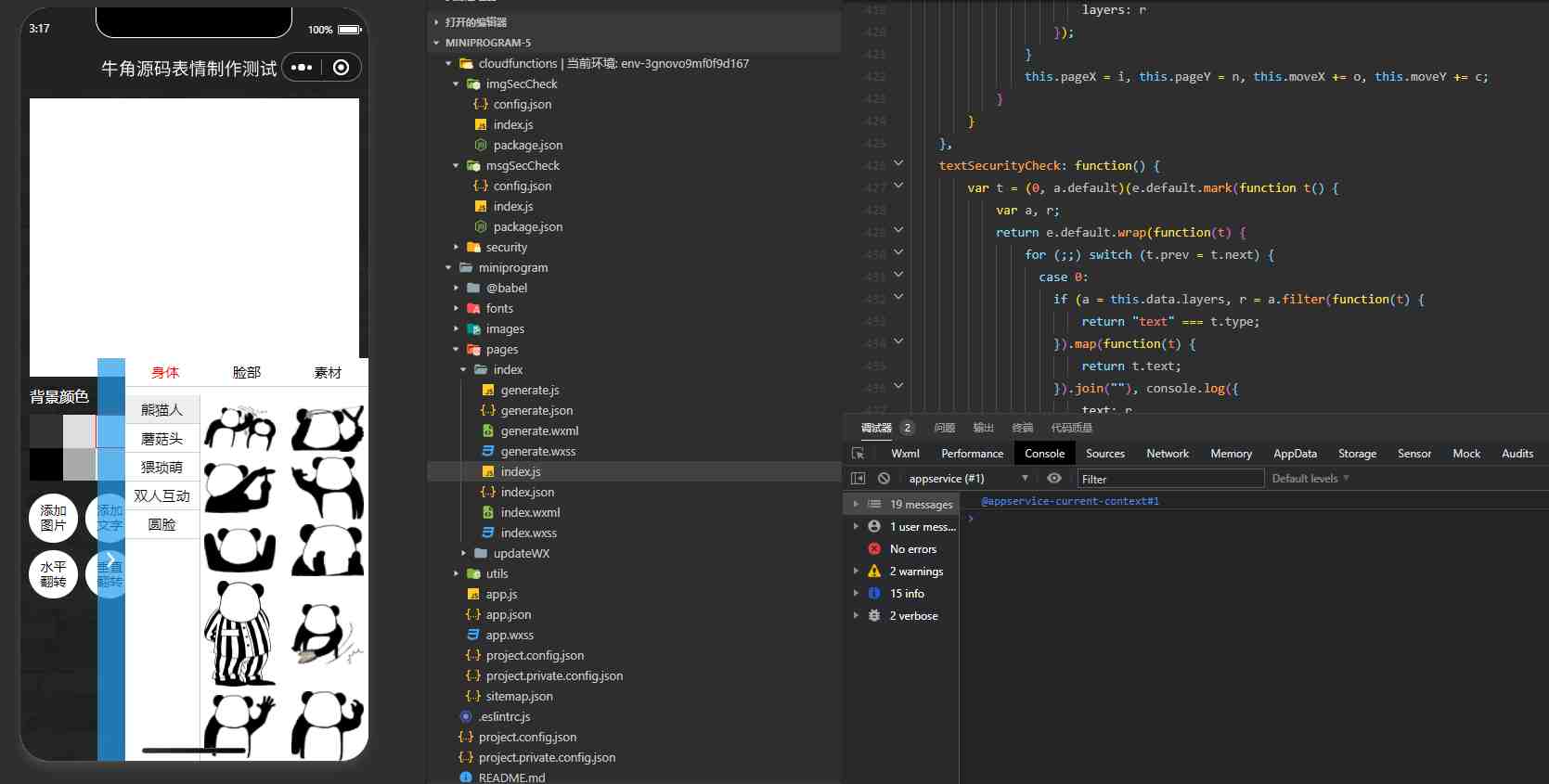 这个表情包制作小程序,功能很自由,于是我想上线一个,本来一切都很顺利,在开发者工具里运行“完美”,我就没想太多,随便测试一下,加了点推广就上传代码了,并把代码扔到