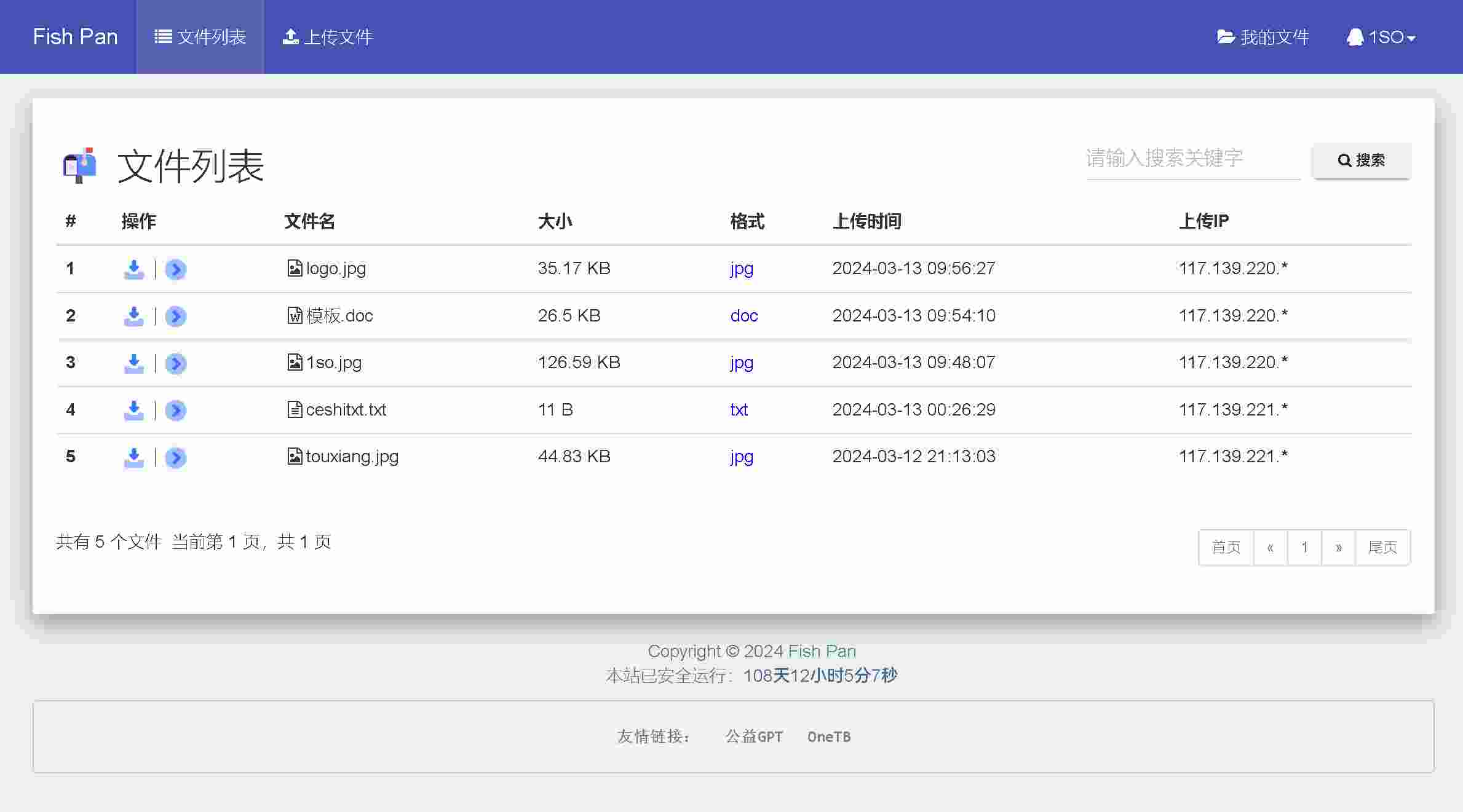 适合小文件快速共享,文件可以设置访问密码,doc,图片等文件可以预览,音频可以在线播放,也适合做图床,支持在线下载,美化前台UI,运行天数和友链在后台统计代码修改。
