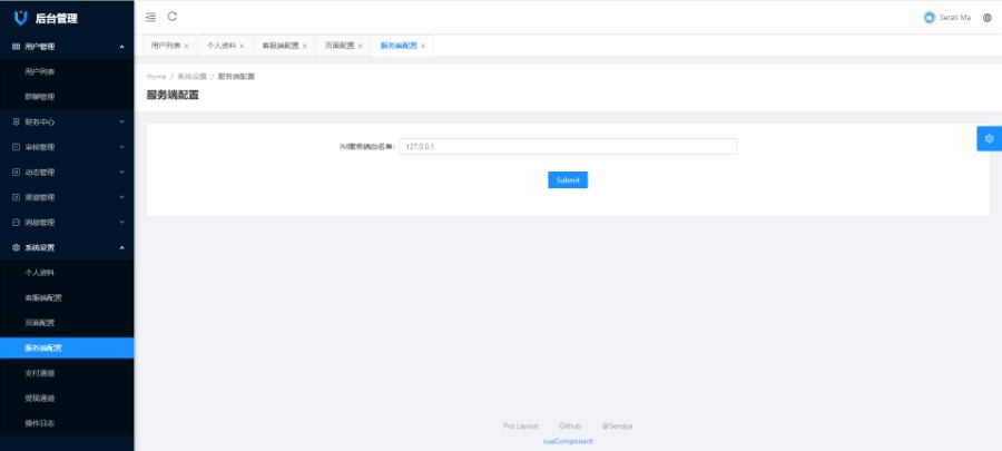 后台管理:数据总览,系统配置,客户端配置,服务端配置,用户管理,角色管理,群组管理,单聊管理,红包管理,系统账单管理等等功能管理功能。