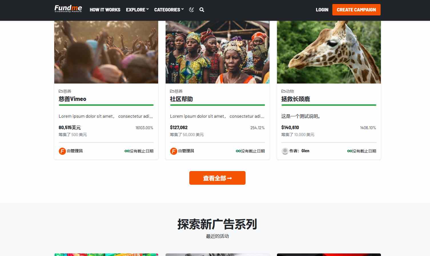 全站开源可翻译,Fundme众筹平台这是一个为各种原因筹款的系统,管理员可以添加可以创建无限活动的志愿者,此脚本完成创建一个社区,其中不同的人可以帮助您的社区或不同的地方有需要的人。