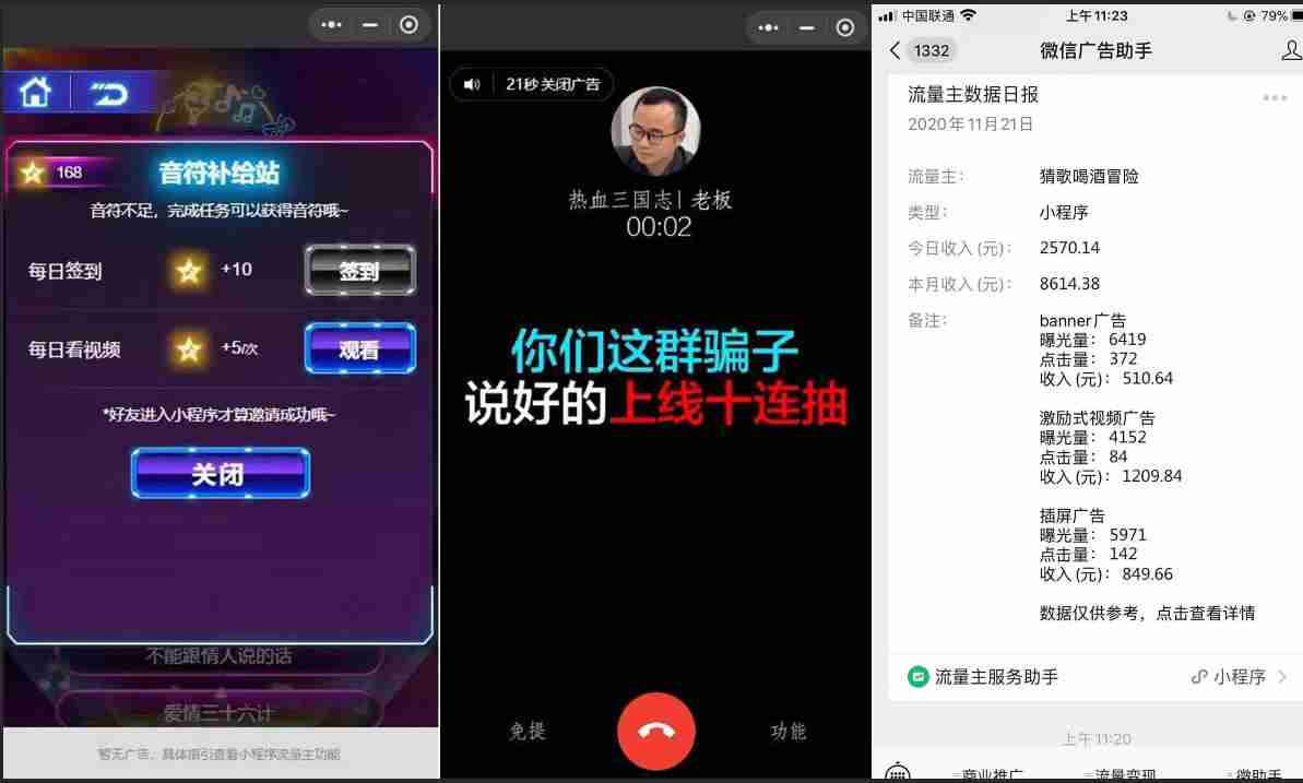 2,小程序内置三种广告类型,插屏广告,激励视频广告,Banner 广告。