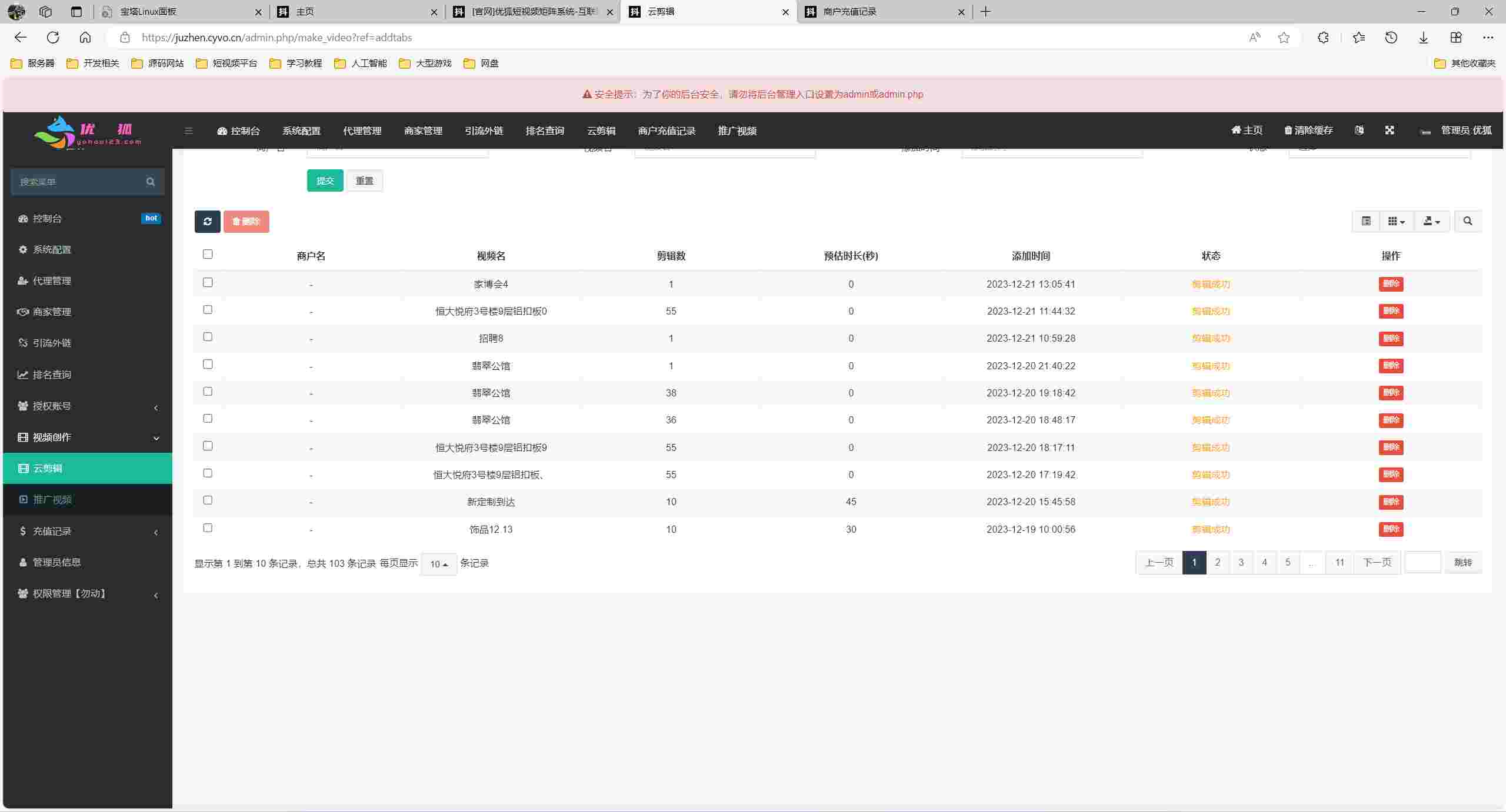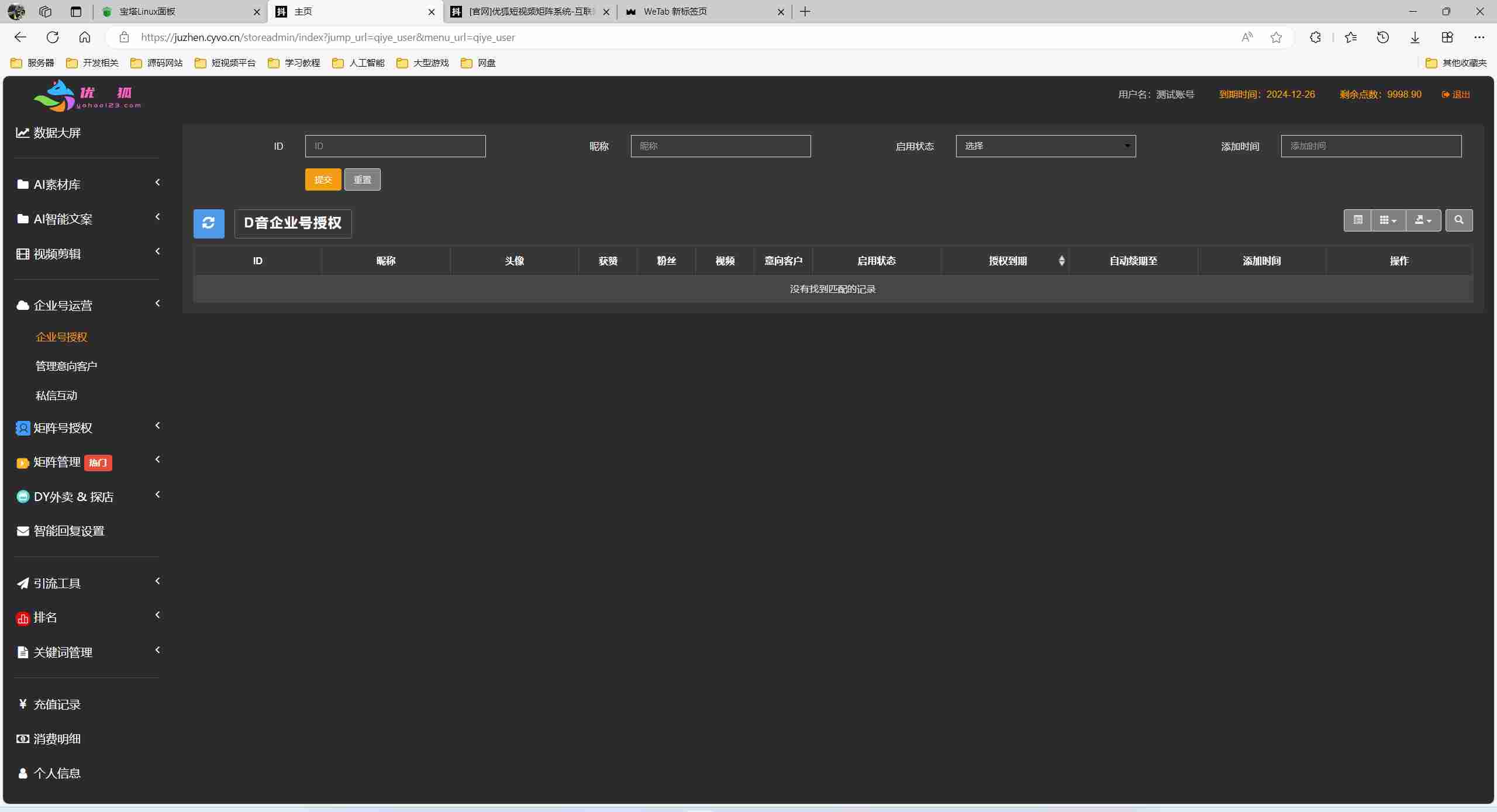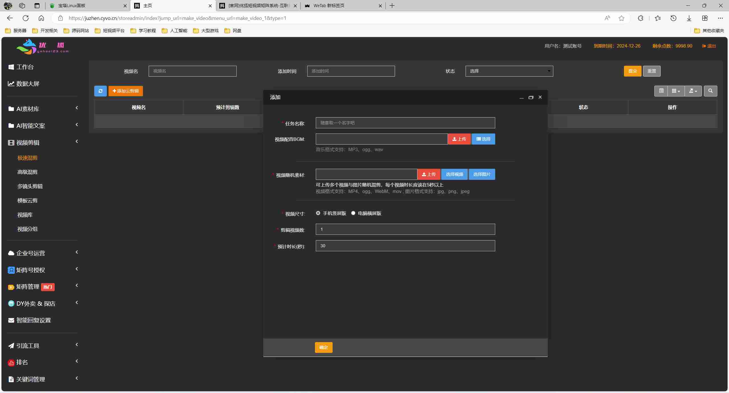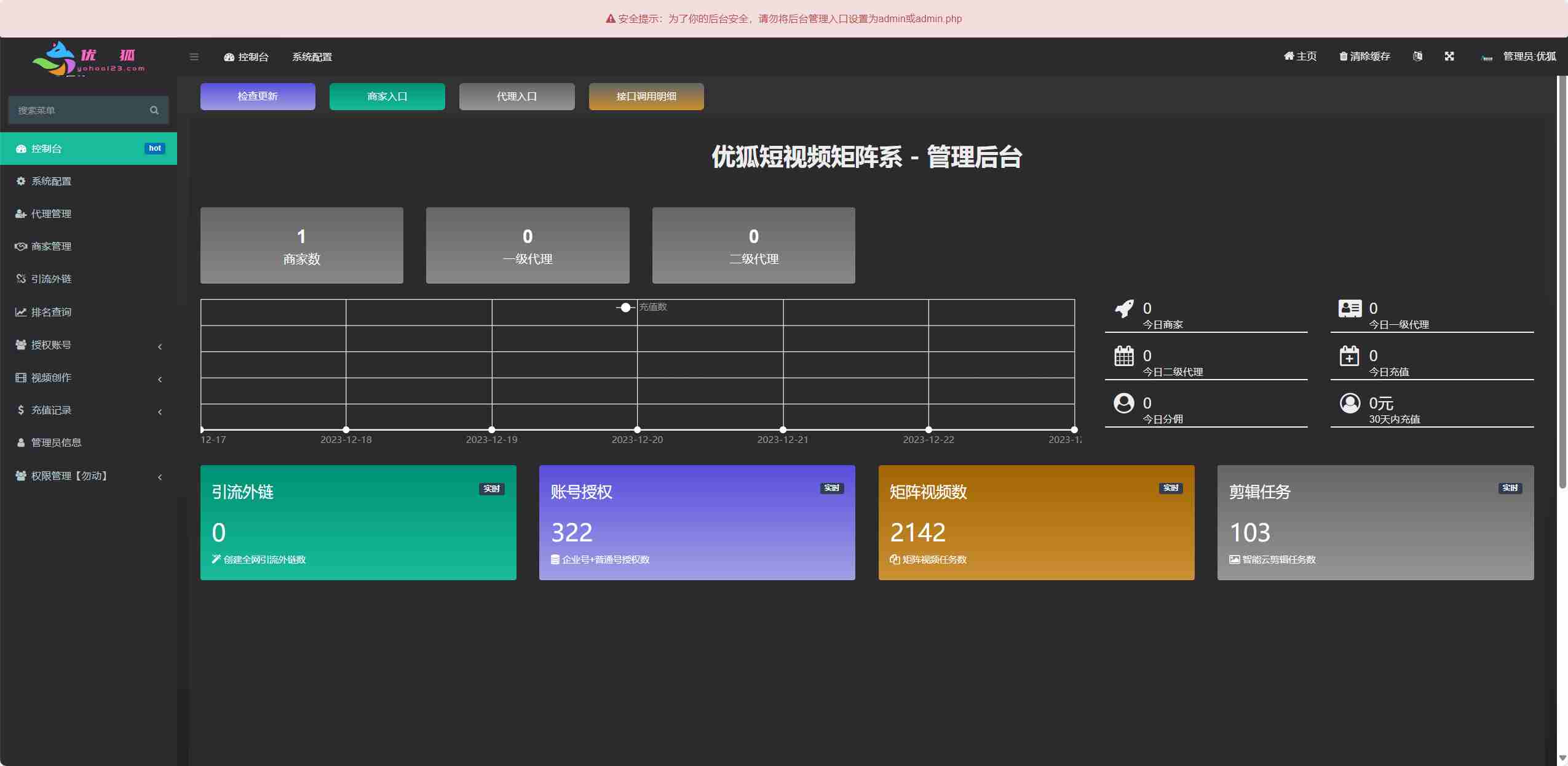 矩阵营销系统多平台多账号一站式管理,一键发布作品。智能标题,关键词优化,排名查询,混剪生成原创视频,账号分组,意向客户自动采集,智能回复,多账号评论聚合回复,免切换,免登陆发布….助力您在这个赛道快起步速追赶强获益。管理后台admin.php,商户后台store.php,代理后台agent.php