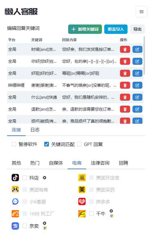多平台支持:当前支持微信、企业微信、千牛、哔哩哔哩、抖音企业号、抖音、抖店、微博聊天、小红书专业号运营、小红书、知乎等平台,未来将不断扩展支持更多社交媒体平台.