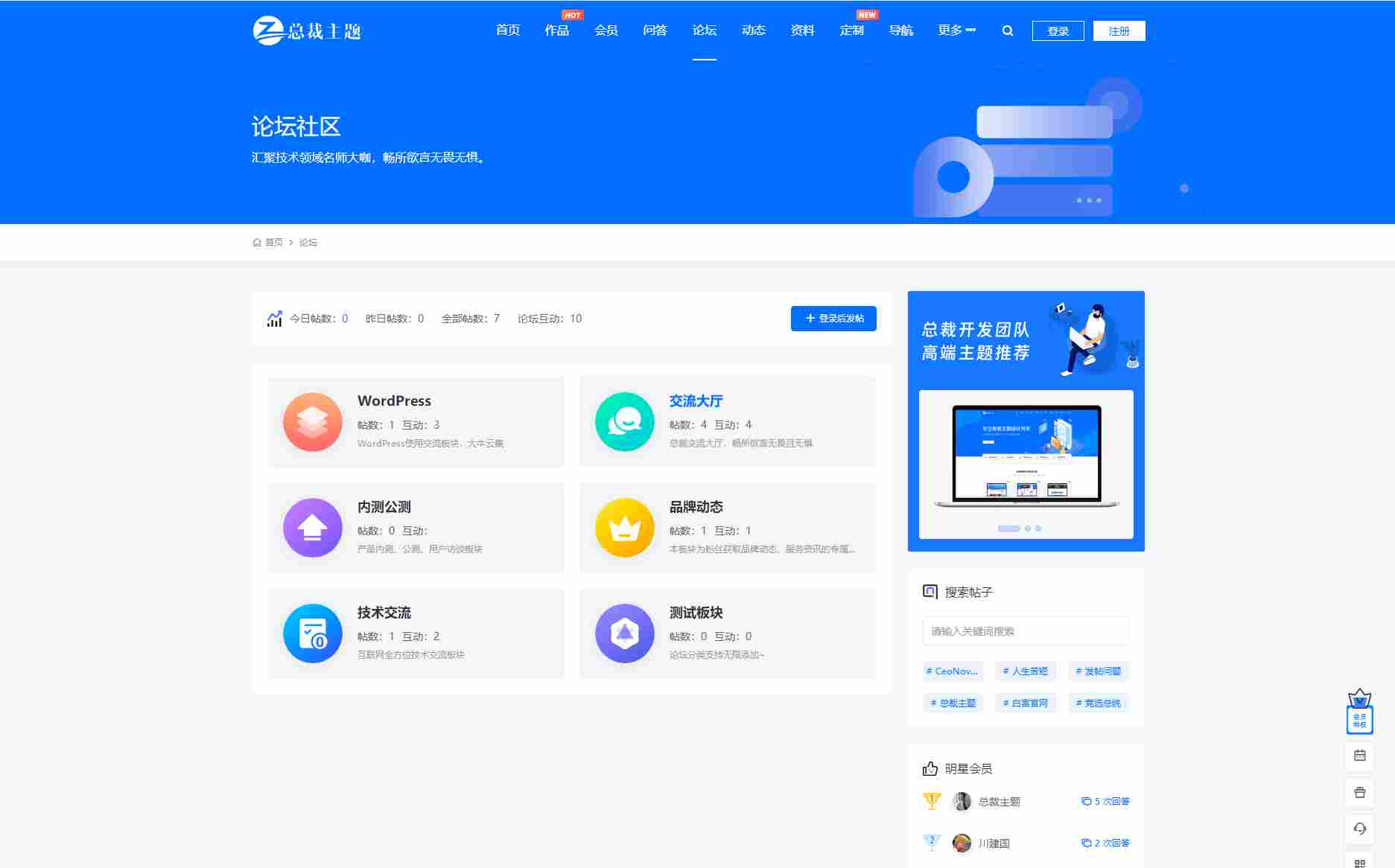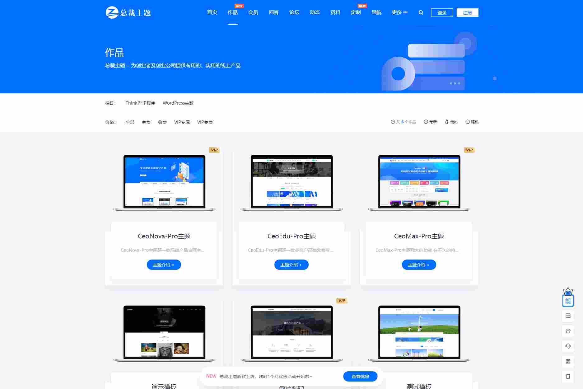 CeoNova主题并非总裁主题官方原规划内的产品,本款主题的推出源于总裁主题官网改版的同时同步上线。