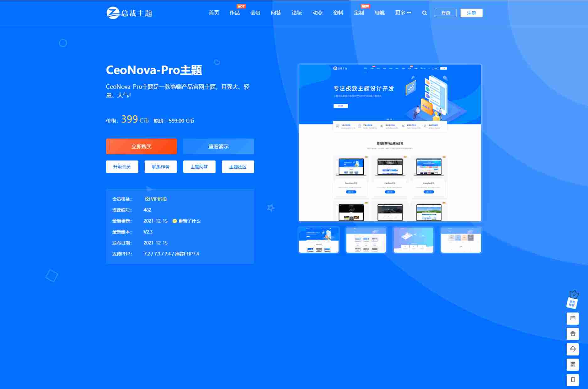 CeoNova-Pro主题是一款轻量级、且简洁大气、产品官网类主题,定位于高端产品官网、同时包含了知识付费、定制服务、问答社区、论坛交流、网址导航、以及付费产品购买下载等全方位覆盖。