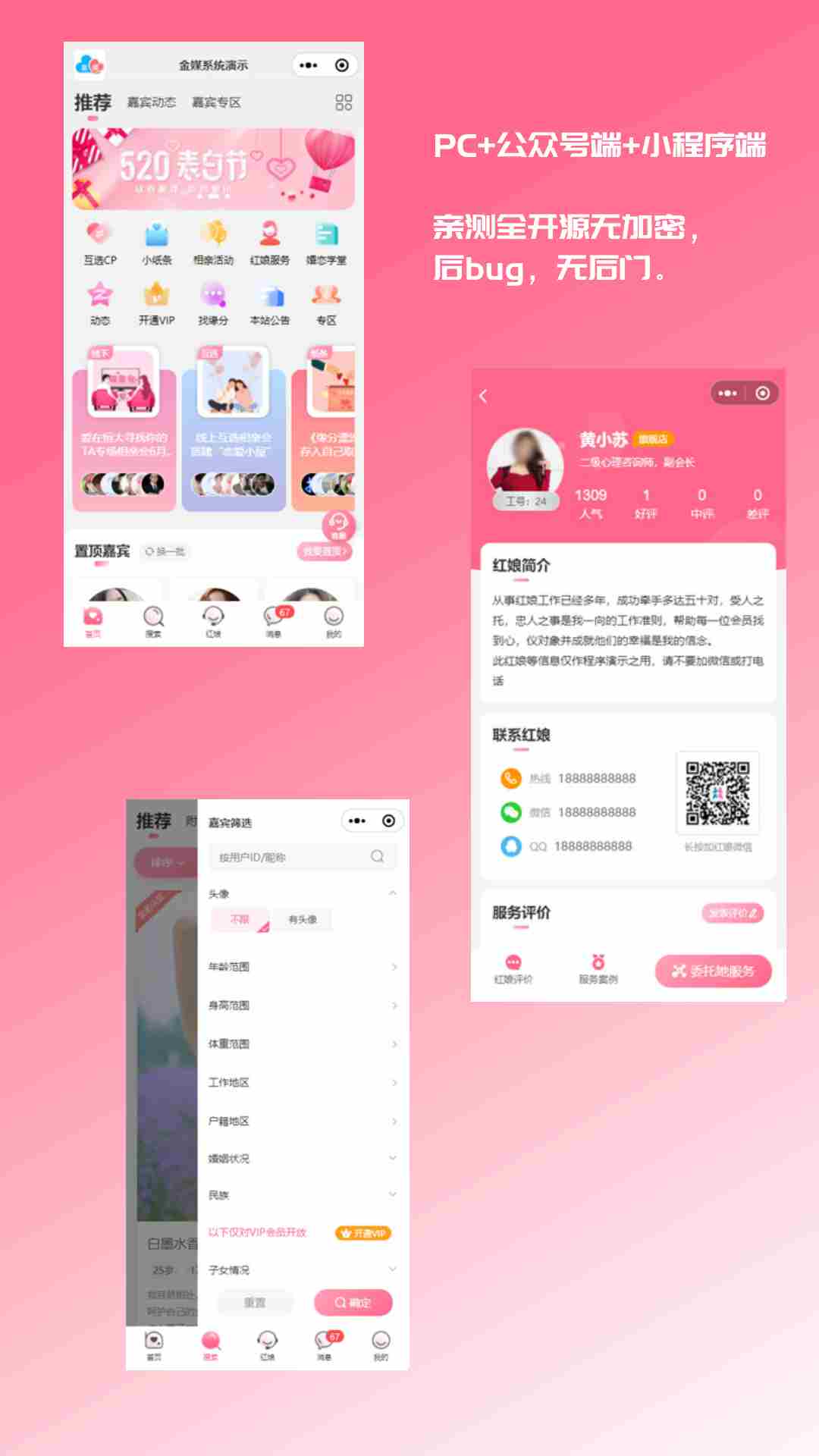 2024最新婚恋相亲系统源码 红娘金媒10.3 PC+小程序+公众号 接入三端