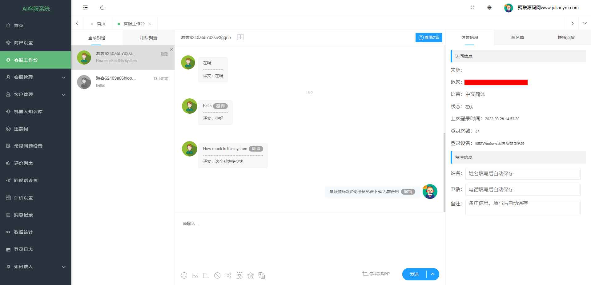(新版带视频教程)2022国际二十种语言在线客服系统源码 多商户无限坐席带机器人带翻译兼容多端