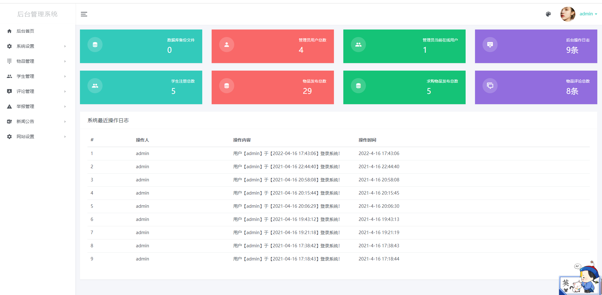 账号密码: admin/123456