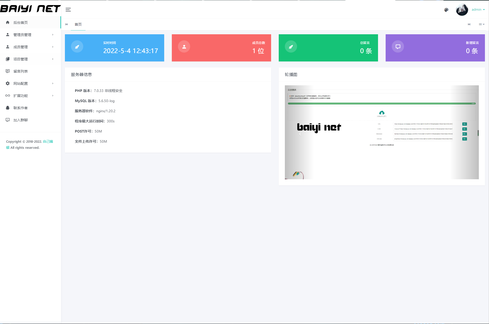 该项目适用于团队/工作室等类型,全站由layui强力驱动,及光年后台模板的使用