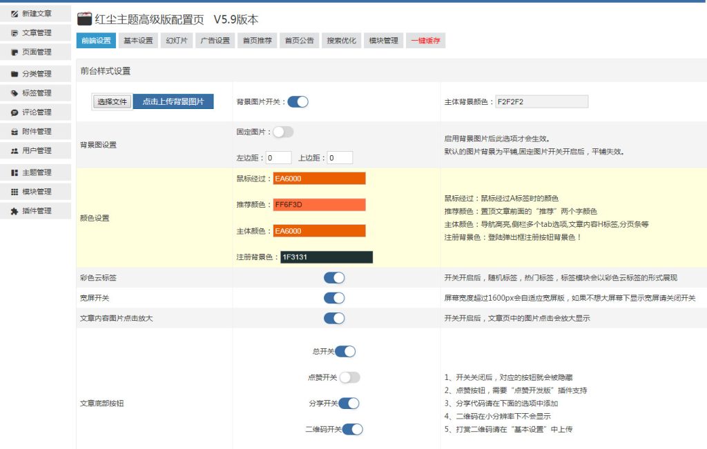 7、主题可自定义一些颜色,比如导航高亮的颜色,分页条的颜色,修改或关闭背景图片等等